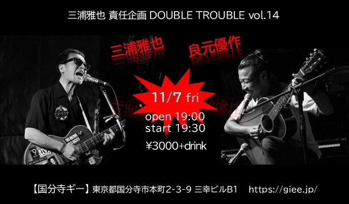 オープン19:00 スタート19:30 ¥3000+ドリンクオーダー・良元優作(vo,gt)・三浦雅也(vo,gt)