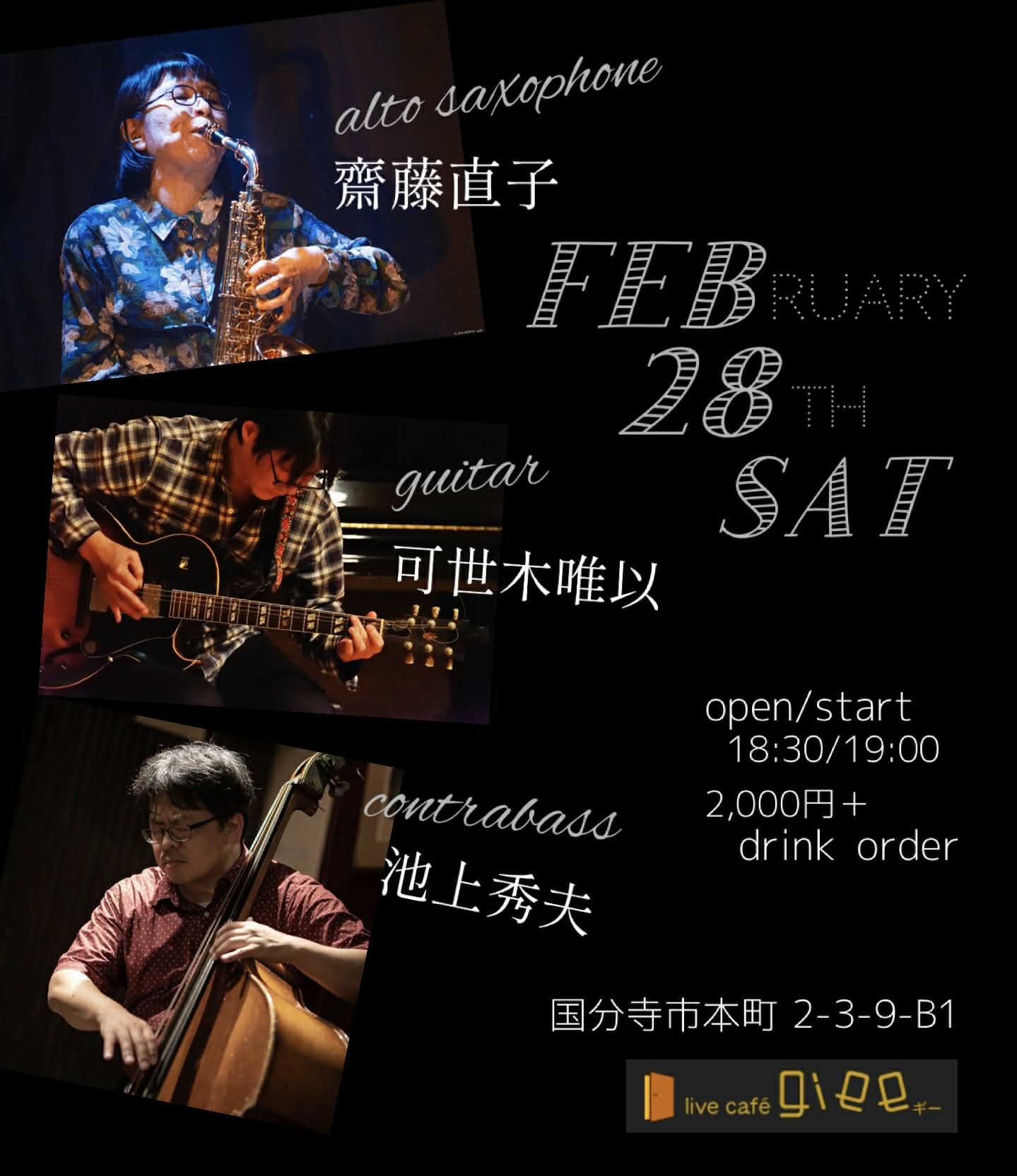 「IMPROVISATION」齋藤直子(as) 可世木唯以(gt) 池上秀夫(cb)