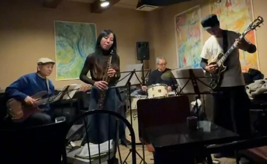 「藤井信雄4」 小山大介(gt) 小林里枝(as) 清水良憲(b) 藤井信雄(ds)