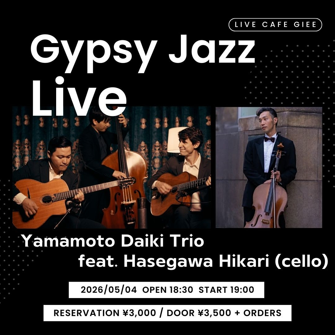 オープン18:30 スタート19:00予約3,000円 当日3,500円 +ドリンクオーダーヤマモト ダイキ (gt)Nicolas Carré (gt)阿部恭平 (b)長谷川光 (cello)