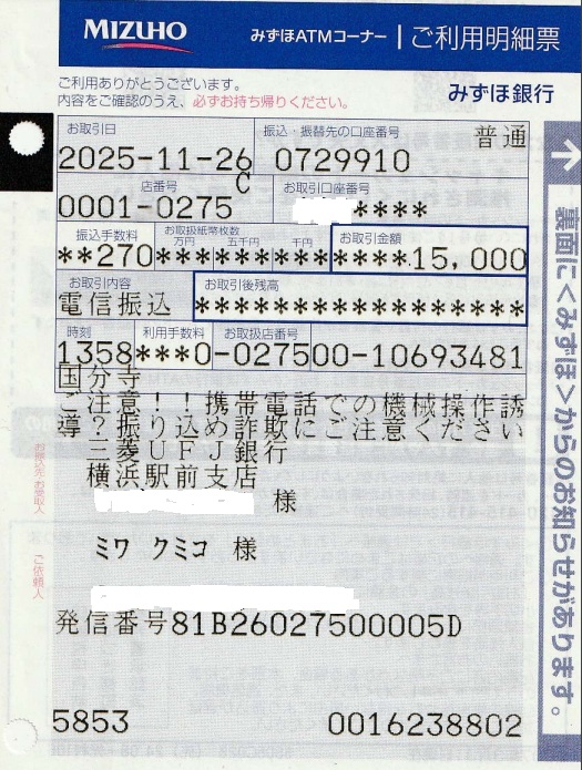 11月期2回目開催の11/21にお寄せいただいたカンパをプロジェクト日本チームに送金しました。