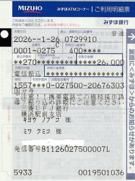 1月17日、23日と、オープンマイク以外の時にお寄せいただいたカンパの合計26,000円をプロジェクトの日本窓口に送金しました。