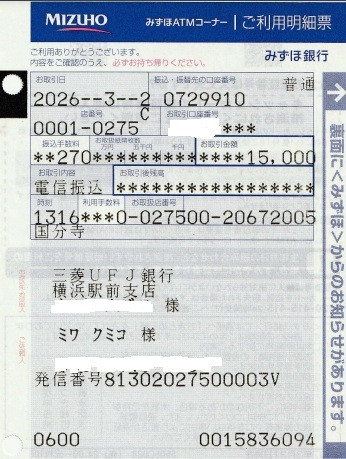 2月20,21,27日と、オープンマイク以外の時にお寄せいただいたカンパの合計15,000円をプロジェクトの日本窓口に送金しました。
